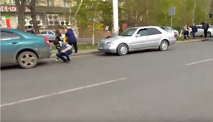 По словам автора, видео было снято 18 мая на пересечении проспекта Богенбай батыра и улицы Бейбитшилик.