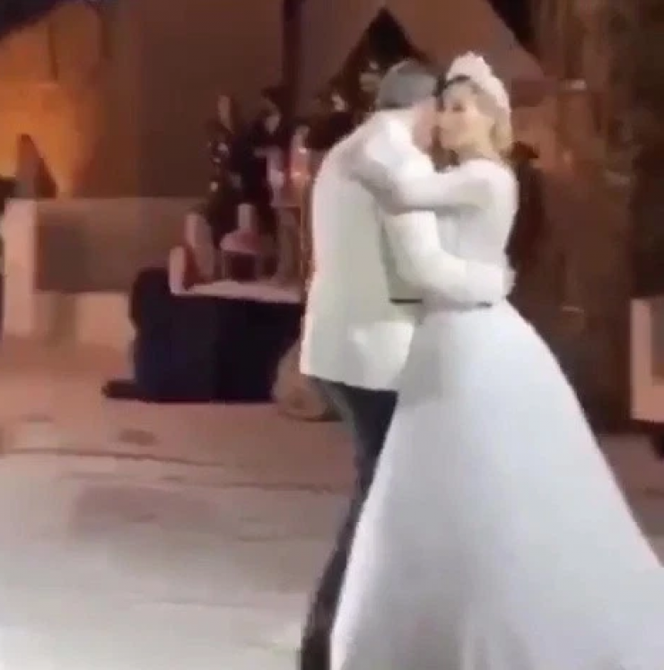 На невесте было традиционное белое платье. Сообщается, что она прибыла на церковную службу в пуленепробиваемой машине.