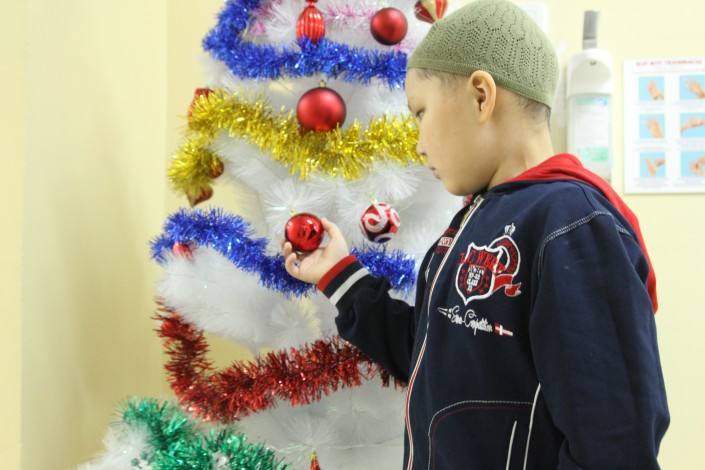 Каждый их день - это борьба со страшным недугом. Это бесконечные больничные палаты, уколы, врачи, лекарства и курсы химио- и лучевой терапии, которые стойко проходят маленькие пациенты детского отделения в Казахском НИИ онкологии и радиологии. Как и все дети, они с нетерпением ждут новогоднюю ночь, наряжают праздничную елку, загадывают желания.