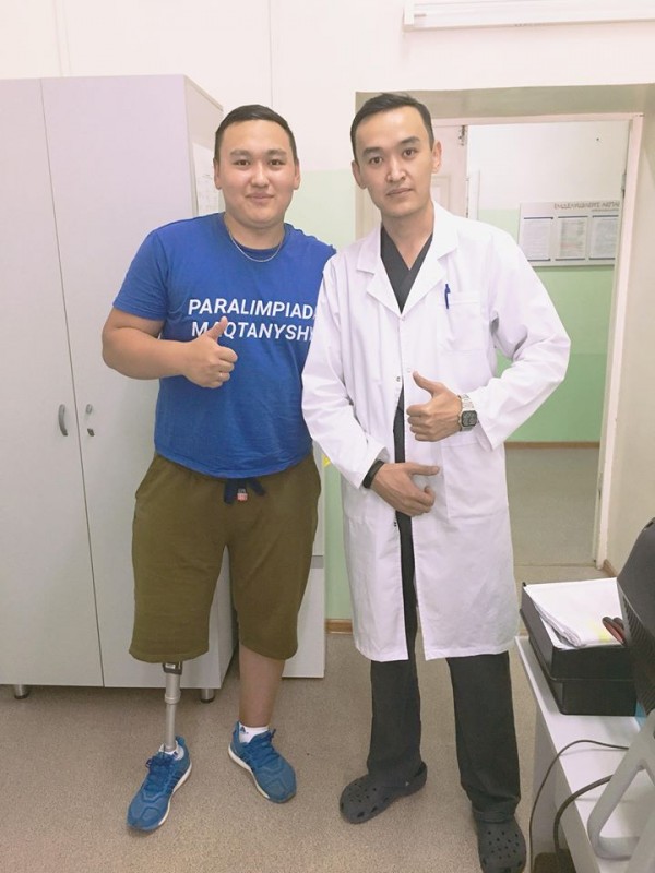 "По основному заболеванию у него проходит ремиссия. Пока Бахтияр привыкает к протезу, но он может заниматься спортом в составе паралимпийцев. С протезом он также может заниматься в спортивном зале с физическими нагрузками", - говорит его лечащий врач из Казахского НИИ онкологии и радиологии Куаныш Орманов.