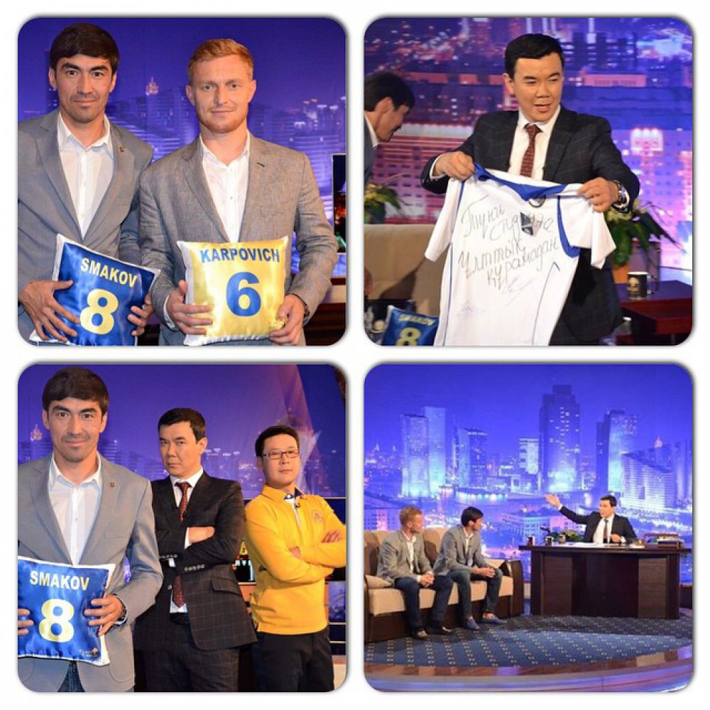Например, капитан "Иртыша" Самат Смаков показал фото со съемок в передаче "Тунгi студия", в которой он побывал с коллегой Андреем Карповичем из "Шахтера".