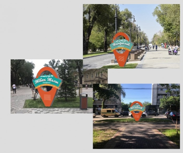 Автором сделана попытка продолжить и размножить как кадр юрту на оси улиц Сатпаева и Байсеитовой. Своим положением арт-объект повторяет и показывает живые изгибы улиц Алматы. Размноженные и разделенные на доли части юрты дают возможность жителям ощутить влияние памяти и времени.