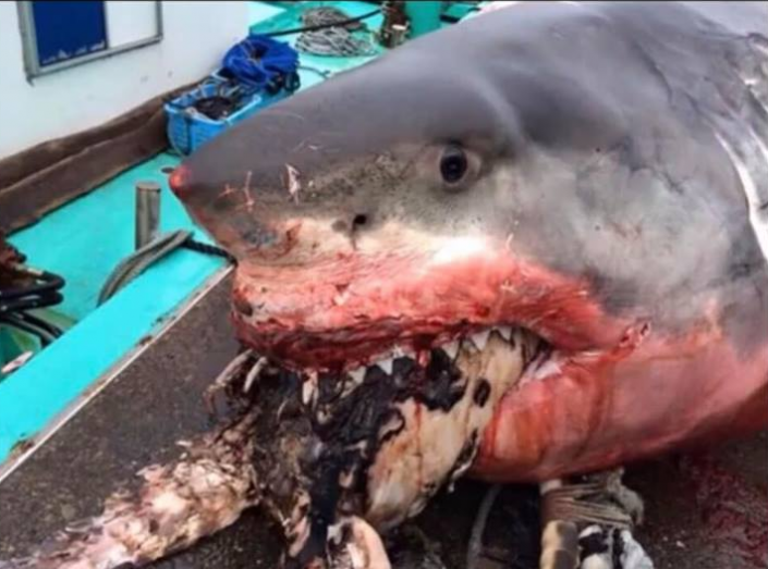 Японские рыболовы выловили в Тихом океане большую белую акулу, погибшую из-за попытки съесть огромную черепаху. Жуткие кадры опубликовал в Facebook американский рыбак Грег Велла. Редкие фото собрали несколько тысяч лайков и отзывов в соцсети.