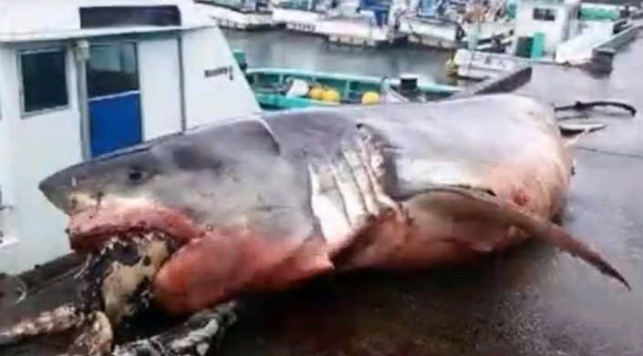 Японские рыбаки поймали гигантскую акулу, погибшую в схватке с черепахой © facebook/Greg Vella