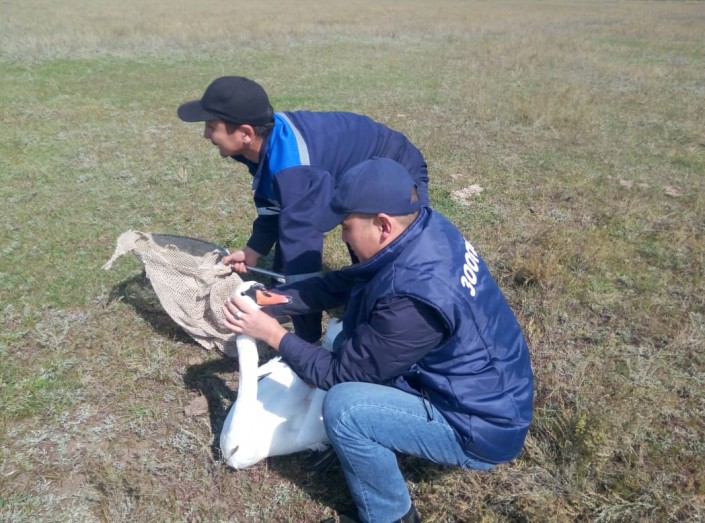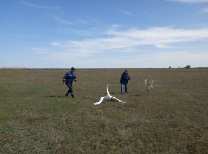 По мнению специалистов инспекции, птица не краснокнижная. Это лебедь-шипун. В Карагандинской области таких несколько тысяч особей, они гнездятся на водоемах. Эти лебеди, видимо, летели на юг.