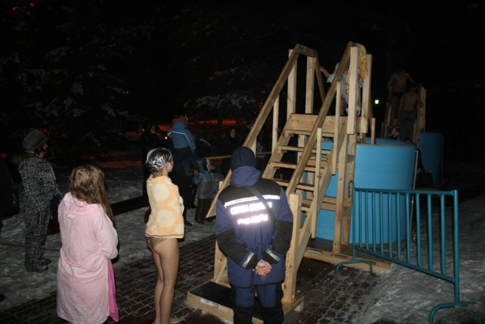 К примеру, в Астане, на набережной реки Есиль выстроились очереди. Желающих окунуться в ледяную воду не смутили ни морозы, ни позднее время суток. На месте дежурили спасатели, медики, были установлены палатки.