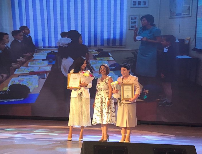 Гран-при в республиканском конкурсе по учебнику Smiles 2 for Kazakhstan среди учителей английского языка заняла учитель школы-гимназии № 105 имени Ораза Джандосова Маржан Бахытова.