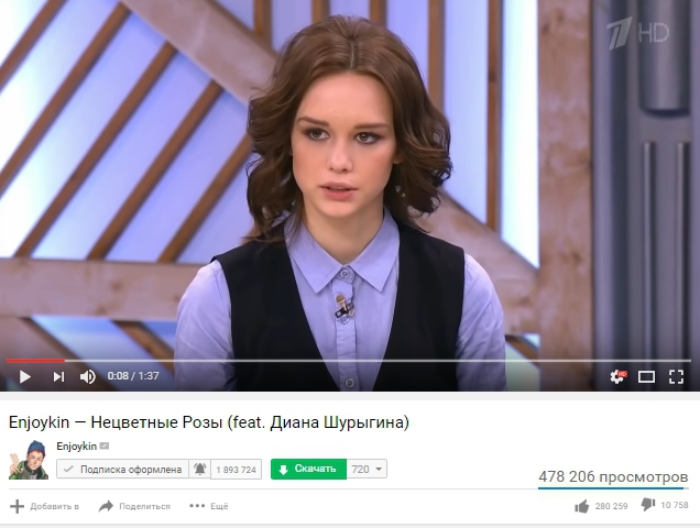 Клип Enjoykin про Диану Шурыгину сломал счетчик в YouTube Кадр Первого канала