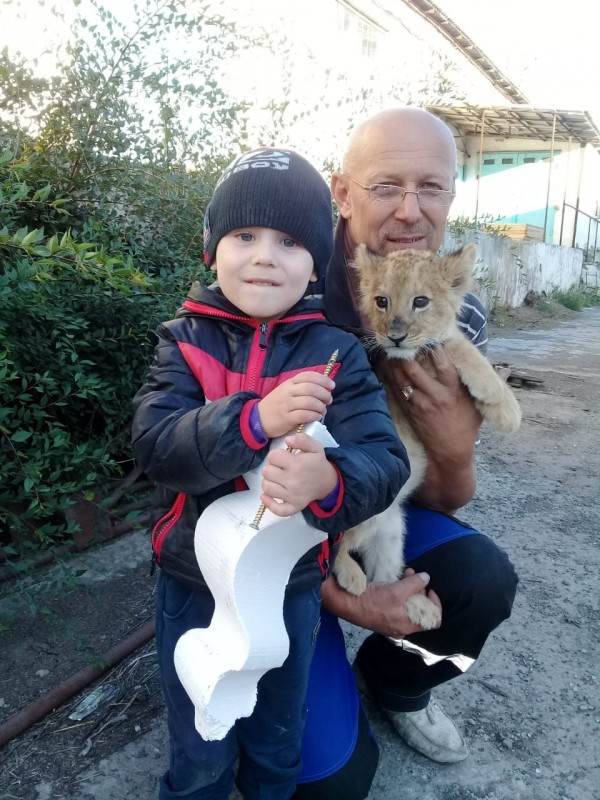 Лоя - детеныш льва и тигрицы, ей всего два месяца. В Павлодар ее доставили самолетом из Москвы в специальном ящике, со всеми документами. Заняться воспитанием лигренка, павлодарцу предложили друзья.