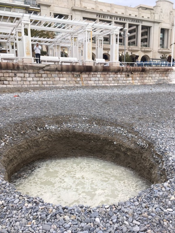 На пляже Ниццы образовалась таинственная воронка Фото: twitter.com/cestrosi