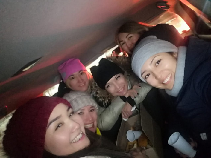 Эти девушки - волонтеры фонда "Демеу". Если однажды в морозный день они предложат вам чашку горячего чая на улице, не удивляйтесь.