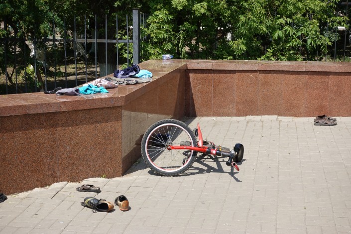 Так спасаются от жары в городском парке.
