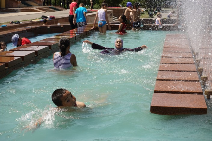 В столице Казахстана уже не первый день держится высокая температура. Вот и сегодня в Астане жарко с самого утра. На часах было еще только 10 часов дня, а термометры уже показывали +33 градуса. К обеду этот показатель достиг отметки +38.