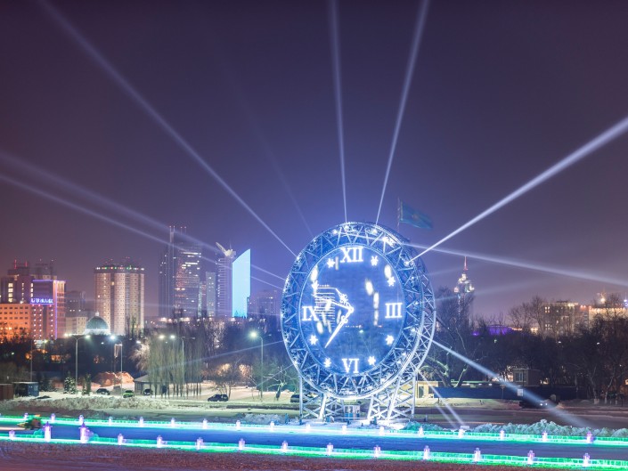 "Часы оснащены точным механизмом, и в новогоднюю ночь фейерверк с набережной реки Есиль будет запущен точно в то время, когда стрелки покажут полночь. Территория вокруг часов является прекрасным и красивым местом для активного зимнего отдыха. Для гостей и жителей столицы здесь установлены ледяные горки и большой каток площадью 8 000 квадратных метров", - отметили в Управлении культуры Астаны.