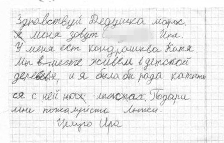 В этом году письма Деду Морозу отличились просьбами не материального характера. 13-летняя Маша просит вернуть в группу МBand Владислава Рамма.