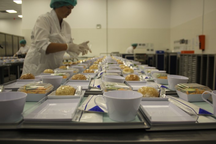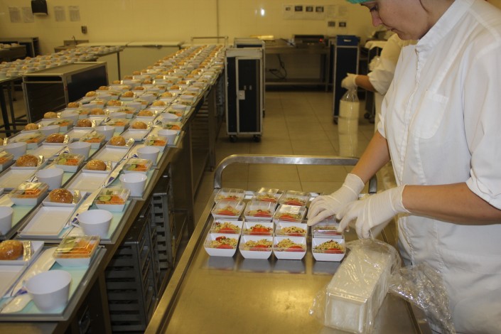 Питание для бизнес-класса и эконом-класса формируется в разных цехах.