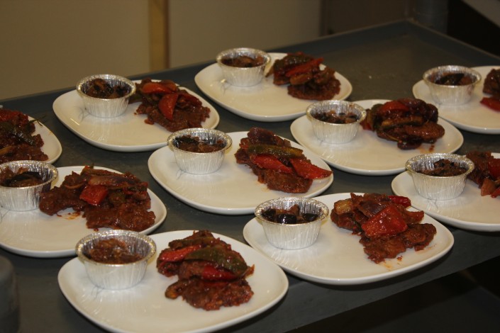 Заказы здесь принимают весьма своеобразно: о количестве необходимых блюд сообщают по громкоговорителю, при этом создается впечатление, что объявляют посадку на рейс. Например, во время нашего посещения на одном из бортов оказалось два вегетарианца. Но это не проблема, к клиентам, которые не употребляют в пищу мяса, здесь, по всей видимости, привыкли, для них есть отдельное вегетарианское меню.