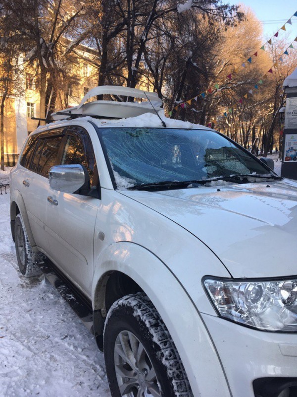 "В течение дня, пока я был дома, не видел. А потом вышел и обнаружил, что упавший снег помял капот, а самое главное, лобовое стекло треснуло. Это достаточно значительный ущерб, потому что у меня машина редкая - Nissan Stage. Я не знаю, где мне теперь лобовое стекло искать", - рассказал Чепченко.