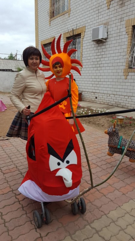 "Чего мы только не придумывали. Сначала хотели соорудить египетскую пирамиду или что-то из "Аватара" (фантастический фильм Джеймса Кэмерона - прим. автора), потом решили, что сложно. Пошли по пути наименьшего сопротивления. В итоге получилась полицейская машина. Пришлось, конечно, повозиться и переделывать. Еще вчера до четырех утра красили, пока гуашь не закончилась. Для коляски в стиле Angry birds долго искали рогатину. Все деревья в округе облазили, пока не нашли подходящую ветку. Роли тоже распределяли с учетом характера, внешности", - рассказывают участницы парада.