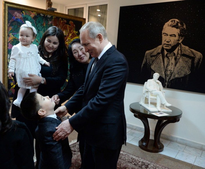 28 марта президент России Владимир Путин совершил визит в Кыргызстан, в рамках которого вместе со своим кыргызским коллегой Сооронбаем Жээнбековым посетил дом-музей писателя Чингиза Айтматова в Бишкеке, пишет АКИpress.