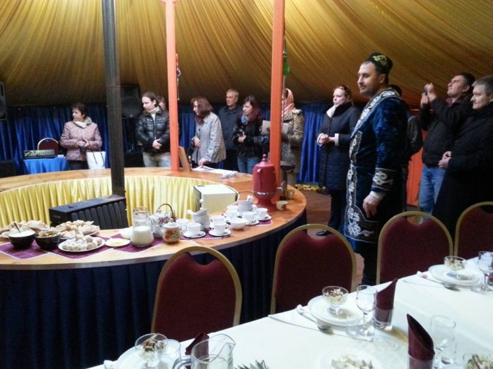 Как стало известно, теплые юрты сооружены из войлока и камышовых матов и имеют разное назначение. Юрты в 23 квадратных метра предназначены для проживания, а в юрте площадью 73 квадратных метра расположен банкетный зал на 60 мест.