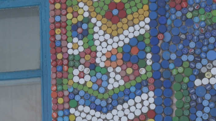 За летней кухней последовали стены сарая, а затем и самого дома. Материал для будущих картин на фасадах теперь собирают не только Поповы. Деревенские жители то и дело приносят пакеты с крышками. Сейчас на стенах построек их уже более 15 000 штук.