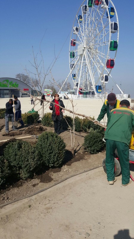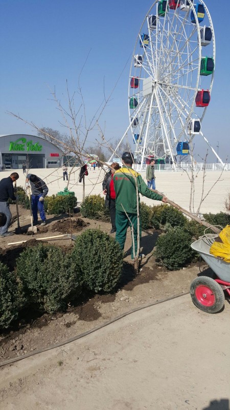"У нас проект благоустройства еще не закончен. Мы же открылись в начале марта, хотели жителям города на 8 Марта сделать праздник, сейчас проект благоустройства и озеленения дальше продолжается. Так что все еще впереди. Мы сейчас плитку только успели выложить и открыться. А сейчас посадки делаем. Буквально сейчас везут колонновидные туи. Мы их посадим в декоративные кадки и расставим по периметру площади. Мы убрали около 10 елей, а высадим штук 90. Еще посадим взрослые лиственные деревья - штук 60. К концу марта мы планируем высадить около 150 деревьев", - рассказал директор парка Коктобе Нурлан Казиев.