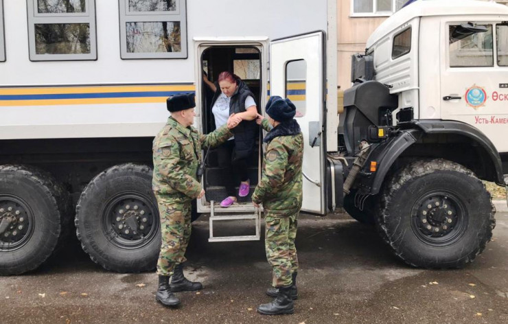 Пока проводились аварийно-спасательные действия, эвакуированные жители ожидали в машине "Вахта", специально используемой для населения в период ликвидации чрезвычайных ситуаций.
