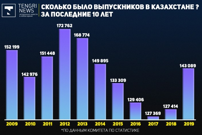 25 мая школьники празднуют последний звонок. Редакция Tengrinews.kz предлагает узнать численность выпускников в Казахстане за последние десять лет.