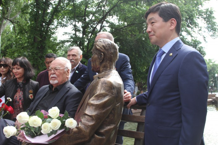 Скульптуру Шакена Айманова установили в Алматы