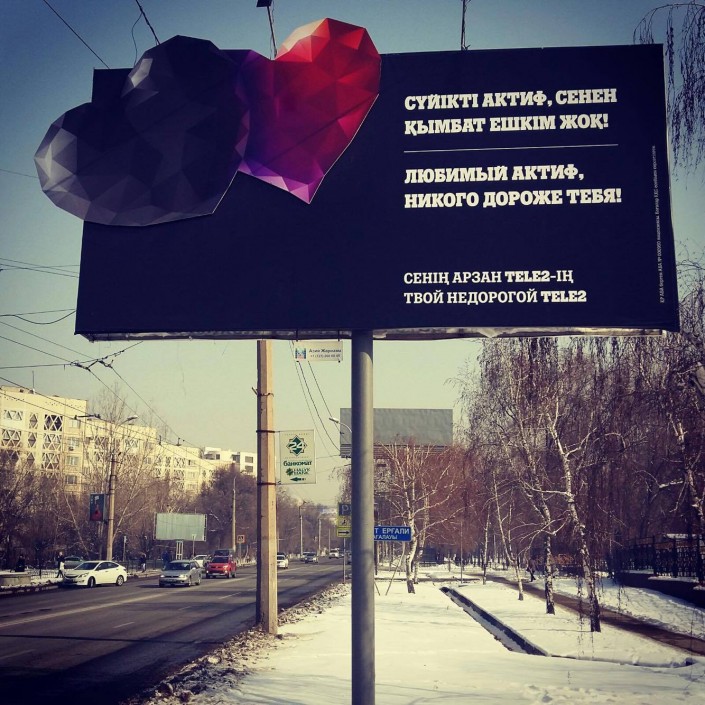 Сотовый оператор Tele2 Казахстан креативно поздравил конкурентов по рынку с Днем всех влюбленных, передает корреспондент Tengrinews.kz.