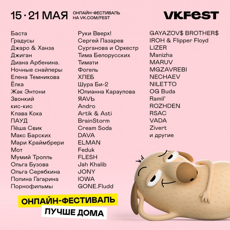С 15 по 21 мая зрители в социальной сети VK увидят больше сотни выступлений и интервью. Смотреть фестиваль можно в официальном сообществе.