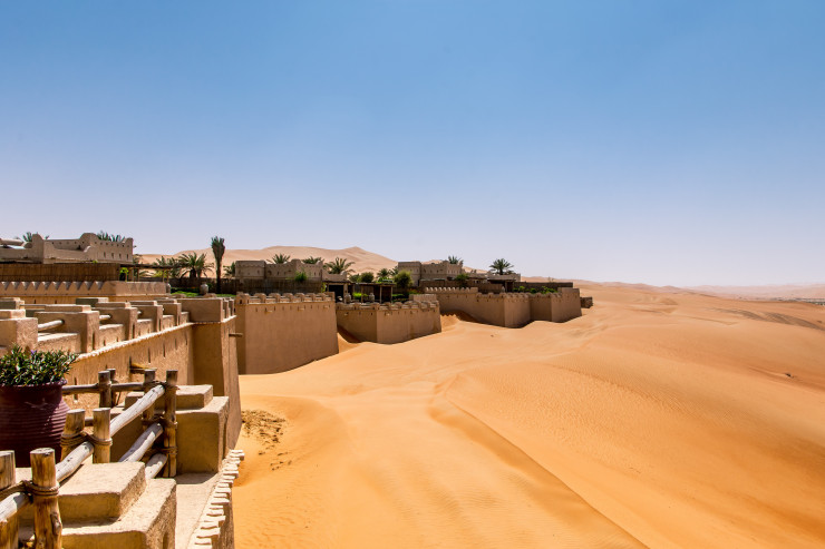 5. Отель Qasr Al Sarab находится в уединенном месте в пустыне Лива, ОАЭ. Он оформлен в стиле пустынного замка, и из него открывается удивительный панорамный вид.