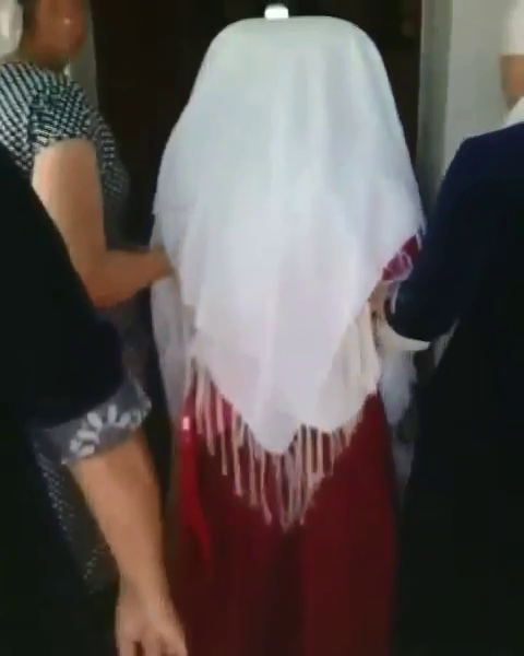 На кадрах снято, как девушку в белой кофточке и с красной лентой "Жас тулек", покрытую белым платком, заводят в дом. Ее за руки поддерживают две женщины. Невесту встречают адраспаном.