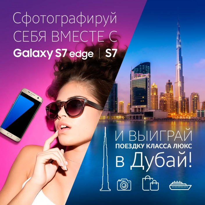 Samsung Galaxy S7 edge предлагает принять участие в увлекательном онлайн-конкурсе, главный приз в котором – это поездка в Дубай с насыщенной развлекательной программой! Участницы могут в период с 1 по 24 марта сделать фотоснимок, где в кадре присутствует смартфон Galaxy S7 edge/S7, и разместить его у себя на странице социальной сети под хэштегом #DubaiGalaxykz. При этом одно из условий – сделать свой профиль общедоступным.