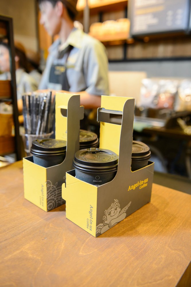 Кофейни Angel-in-us выдержаны в европейском стиле и включают три зоны: take away - для тех, кто хочет купить кофе или десерты "с собой", study zone - для тех, кто хотел бы поработать или позаниматься в кофейне, lounge zone - для комфортного времяпрепровождения с друзьями.