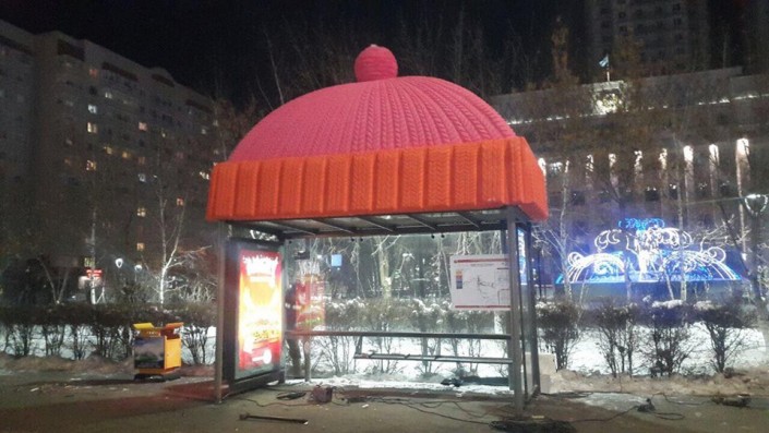 Жители Астаны активно комментируют появившиеся на крышах автобусных остановок украшения в виде вязаных шапок, передает Tengrinews.kz.