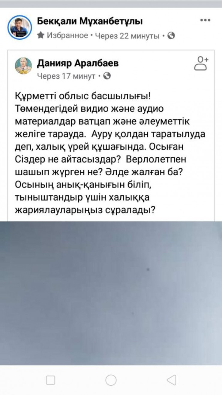 Тікұшақтан у шашылғаны туралы тағы бір фейк. Бұл жолы Ақтау тұрғындары таратты. Facebook-те Ақтау үстінен тікұшақтар вирус "шашады" деген хабарлама жарияланды.