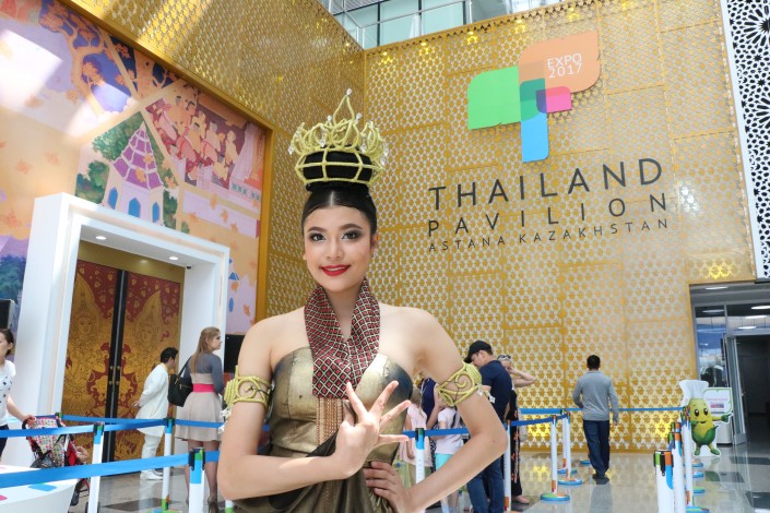 "Перед входом в павильон гости могут участвовать в розыгрышах уникальных биосумок, узнать много интересных фактов о Таиланде и стать ближе к культуре тайцев. Внутри павильона гостей знакомят с маскотом - кукурузой Палангом. Во втором выставочном зале наши гости приходят в восторг от 3D-шоу, которое было подготовлено нашими тайскими коллегами. А в третьем зале культура и технологические возможности Таиланда перемешиваются и дают уникальную атмосферу", - рассказывает волонтер павильона Нурсултан Ильяс. Он также считает, что павильон Таиланда с технической точки зрения - один из самых прорывных объектов EXPO