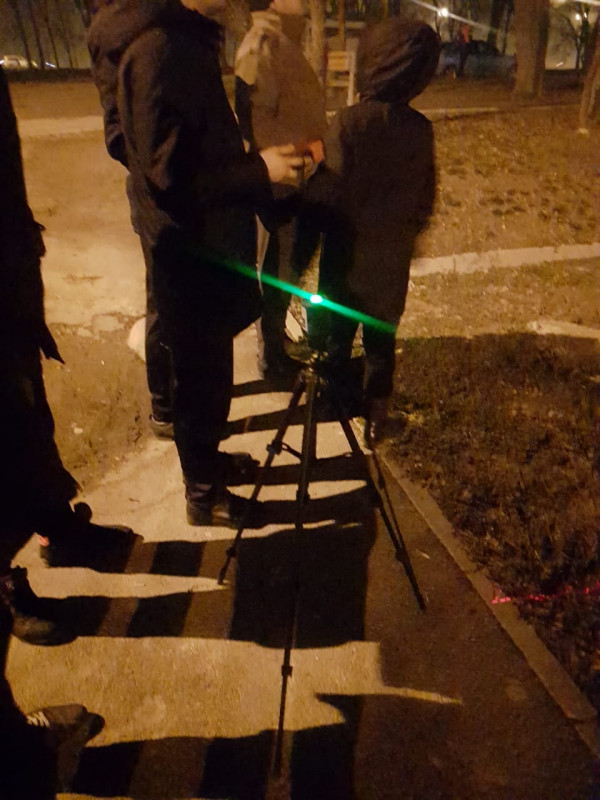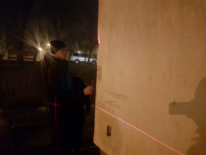 Один из жителей работает архитектором. Он принес лазерный прибор, который измеряет перпендикулярность стены дома к земле. После замеров жители дома предположили, что у дома есть отклонение примерно на 25 сантиметров.