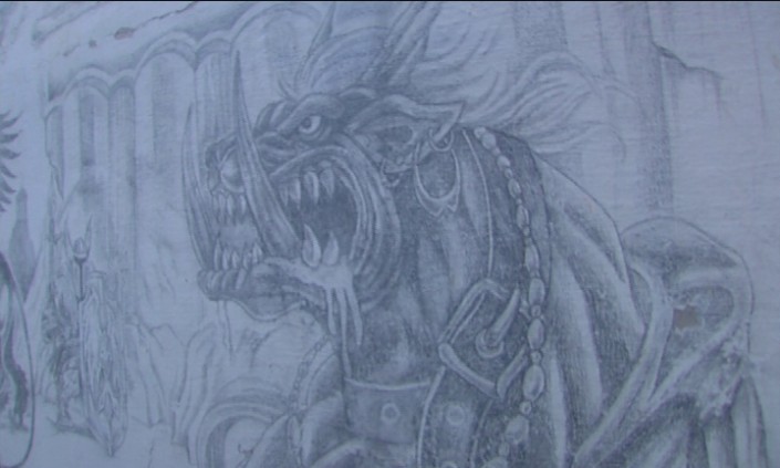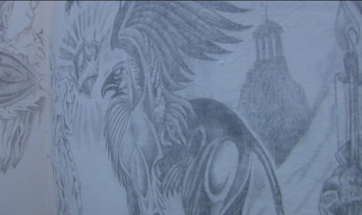 После этого на стене стали красоваться инопланетянин, черепа, драконы, орки и многие другие. "Вообще мне нравится фэнтези. Это что-то такое сказочное. Ведь всегда хочется попасть в сказку. Пусть мы уже и взрослые, но, по сути, остаемся всегда детьми. Наверное, поэтому и выбрал этот жанр", - отметил Александр Алфимов. На каждое изображение уходит по два часа, а иногда и больше.