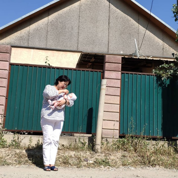 Эльмира Ешниязова төрт айлық Мираспен жаңа баспананың алдында