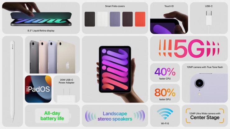 Следующей новинкой презентации стал iPad Mini. Он получил новый более совершенный дизайн - с диагональю 8,3 дюйма и закругленными углами планшет удобно ложится в ладонь. Помимо этого, он будет оснащен usb-c-портом и возможностью подключения к сетям 5G. Компания обещает, что новый iPad Mini будет самым мощным и универсальным из всех своих предшественников. Заказать новинку можно по цене 499 долларов.