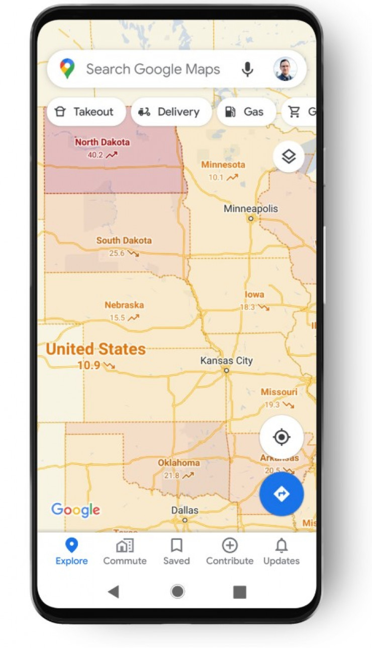 Исследователи объяснили, что пользователи Google Maps могут включить эту функцию и увидеть цветную карту, основанную на количестве случаев заболевания на 100 тысяч человек. Там же появятся ярлыки, указывающие на рост или снижение цифр за последние 7 дней.