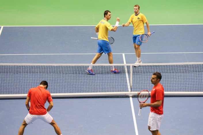 В парном разряде казахстанский дуэт Александр Недовесов и Андрей Голубев в трех сетах обыграли сербов Новака Джоковича и Ненада Зимонича: 3:6, 6:7, 5:7. Таким образом, после двух дней противостояния с Сербией сборная Казахстана впереди - 2:1.