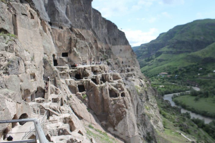 Здесь, в Вардзии, находится действующий пещерный монастырский комплекс XII-XIII веков. Это просто невероятное место, которое в праве называться памятником древней архитектуре и строительству. Это место еще называют "Пещерами царицы Тамары".
