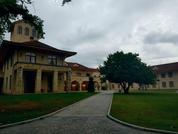 Первая остановка маршрута - музей Александра Чавчавадзе - знаменитого грузинского поэта. Раньше здесь находилась усадьба поэта, где, по рассказам гидов, и началось современное грузинское виноделие. Сейчас здесь находятся музей, парк, винные погреба и зал дегустации.
