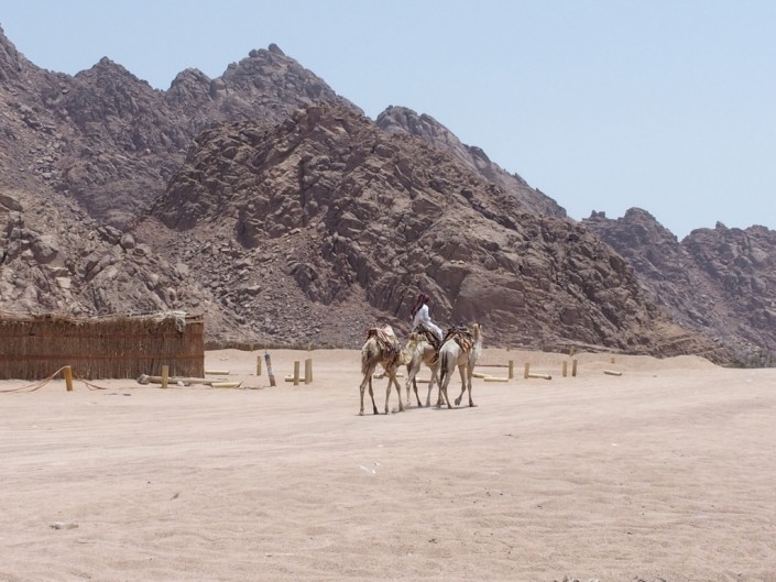 Бескрайнее небо, простор, пустыня, горы, скорость, свобода – вот что такое мотосафари на Синае! Квадроцикл настолько прост в управлении, что двух минут достаточно, чтобы ощутить себя с ним единым целым. На отдельных коротеньких участках удается развивать большую скорость, природа все интереснее, горы становятся все ближе, исчезает последняя растительность, вдалеке бредет караван из трех верблюдов, мы въезжаем в ущелье, где нет ничего, кроме песка, камней и красноватых скал причудливых очертаний. Мы здесь совершенно одни среди пустынного пейзажа, чем-то напоминающего марсианский.