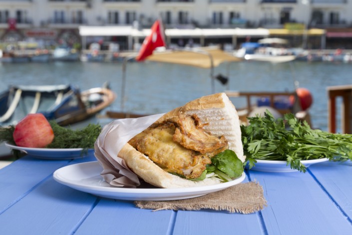 Балык-экмек. Это традиционный приморский фастфуд. Дословный перевод этого названия - хлеб с рыбой, что, в общем, и отражает суть данного блюда. Для приготовления балык-экмека используют обжаренное филе морского окуня либо дорады, которое выкладывают на багет вместе с салатом, луком, помидорами и поливают лимоном.