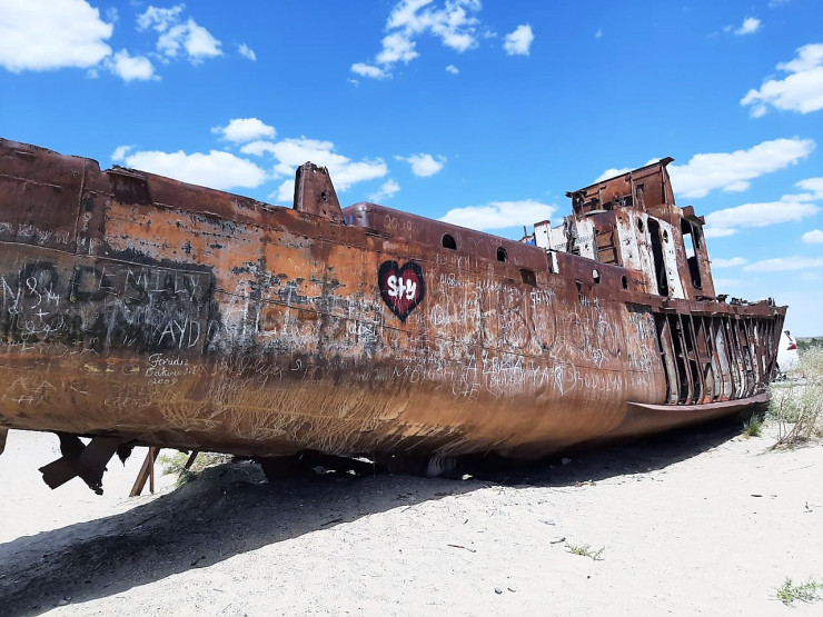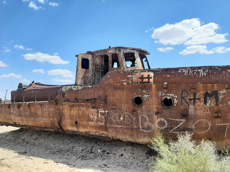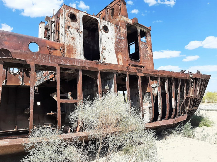Муйнак, бывший портовый город. Здесь расположено знаменитое кладбище кораблей. Прямо перед набережной ржавеет с десяток бывших судов.